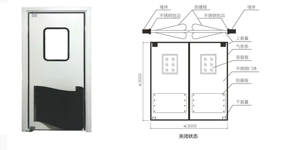 特點:屬于高耐沖擊自由防撞門,是設(shè)計的一種多用途的自由防撞門,能滿足常用的大部分使用環(huán)境,可以通過手動推車,小型電動推車等交通工具的沖擊,開關(guān)輕便;門體輕便耐用,易維護,滿足長期使用;該防撞自由門能滿足需求者要求,整個防撞自由門全防銹防水處理,便于頻繁清洗,滿足高品質(zhì)要求的食品廠,潔凈廠房等客戶要求;